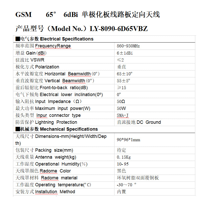 物品名称:0.8GHzGPCBrf射频无线16dBi单极化板电缆线板定向分配无线