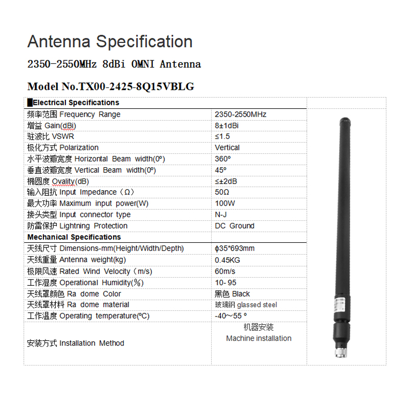 物品名称:高增益控制破璃钢外置wifi天线 反无2350-2550MHz 8dbi外置wifi天线